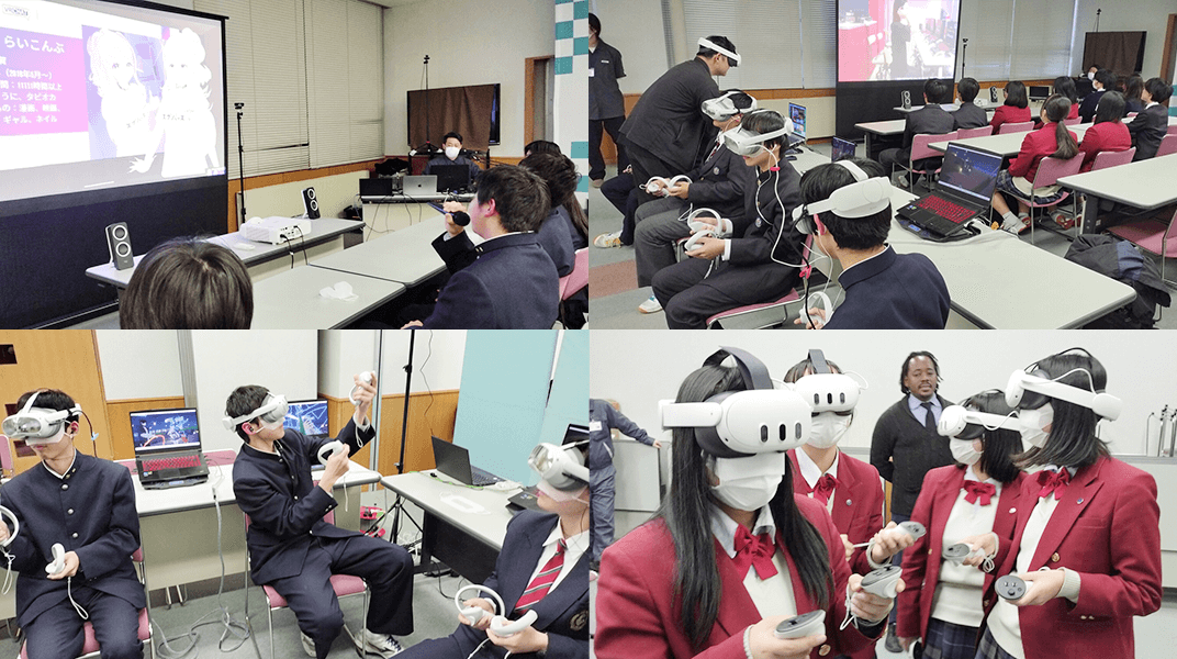 9月10日(木)、本年度最初の高校生向けXR体験会を酒田光陵高等学校で開催しました! 今回は普通科2年生の皆さんが、さまざまなXR(クロスリアリティ)の世界に飛び込んでくれました。メインイベントはバーチャル空間の交流!体験会の目玉は、バーチャル空間で交流を楽しむVRChatです。VRゴーグルを装着した高校生たちは、